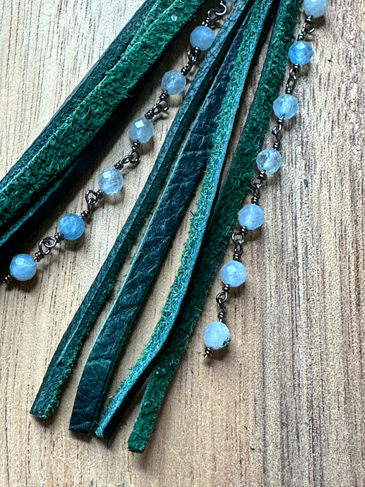 Pendientes de flecos de cuero y piedra lunar 🌱