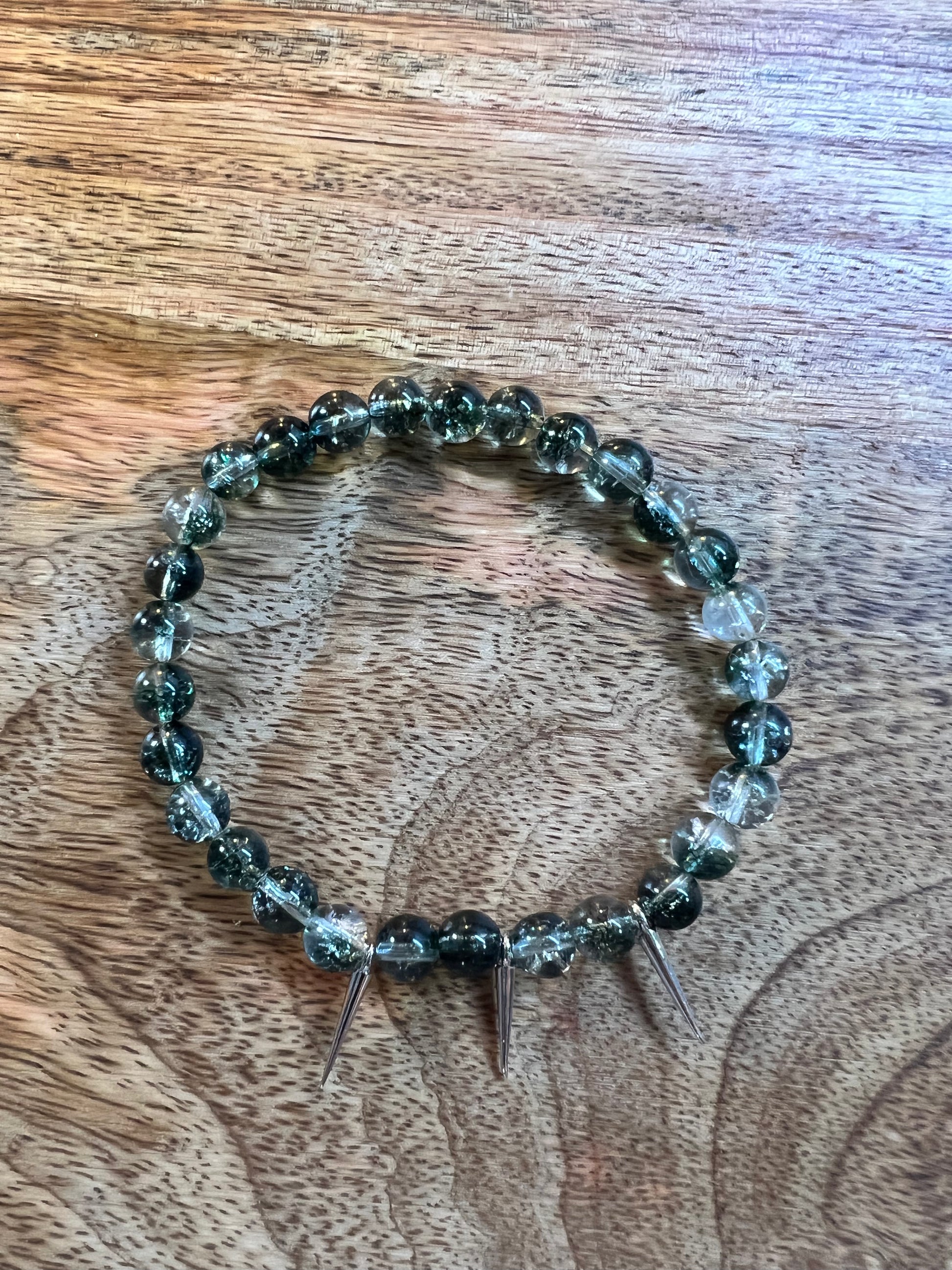 Estas piedras de cuarzo fantasma verde de 6 mm tienen toques de verde y parecen brillar con el brillo cuando el sol las golpea. ¡Son piedras preciosas! Las 3 púas son plateadas.