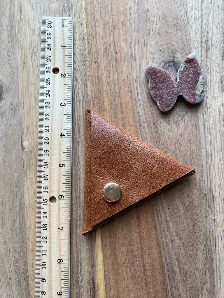 Este es el triángulo de gran tamaño hecho de cuero café y tiene un broche dorado. El clip dorado se colocará después de la compra.