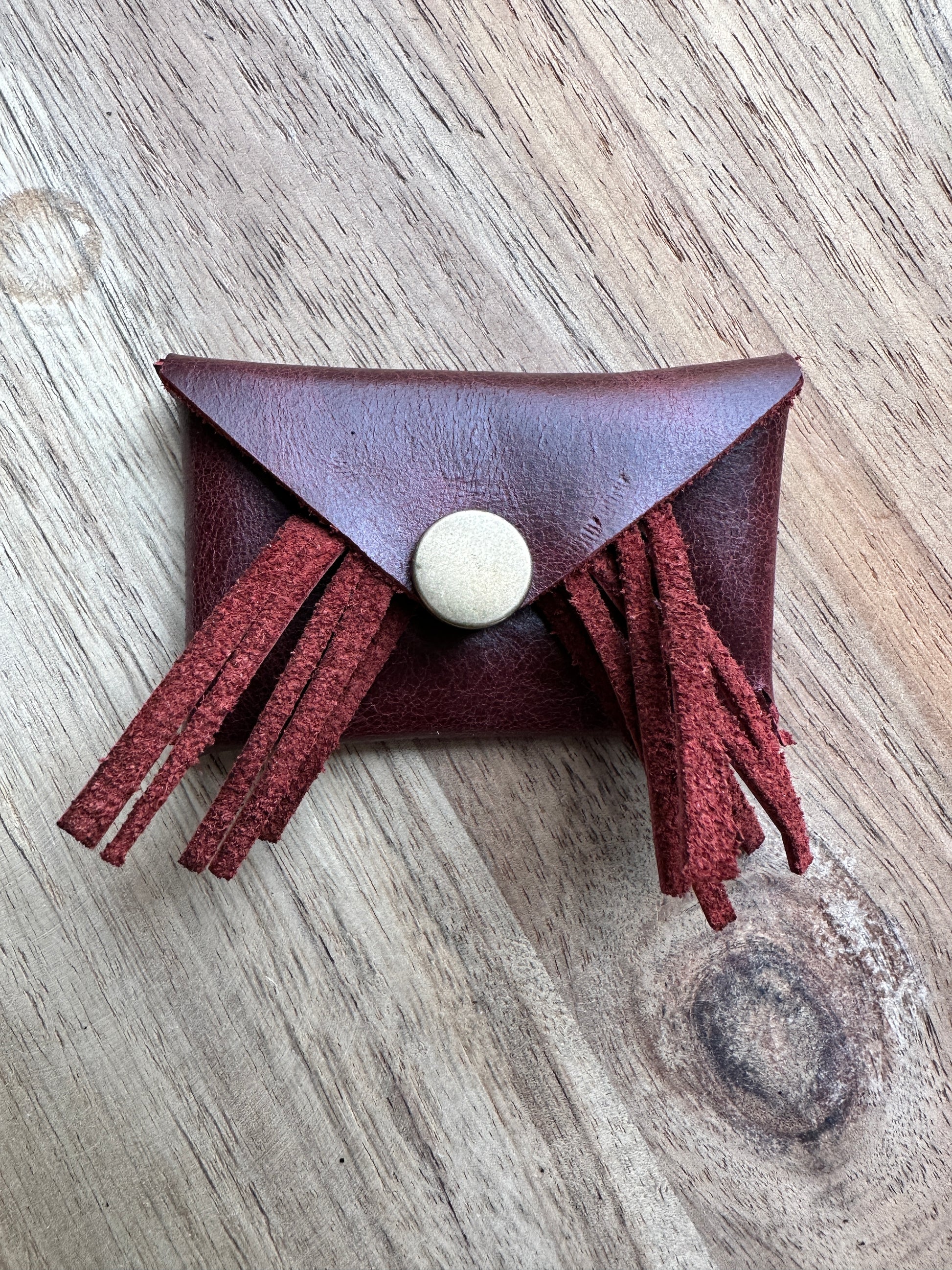 ¡Esta bolsa merlot es demasiado pequeña para tarjetas de crédito, pero es adorable y puede usarse para cambio o cualquier otra cosa que se te ocurra!