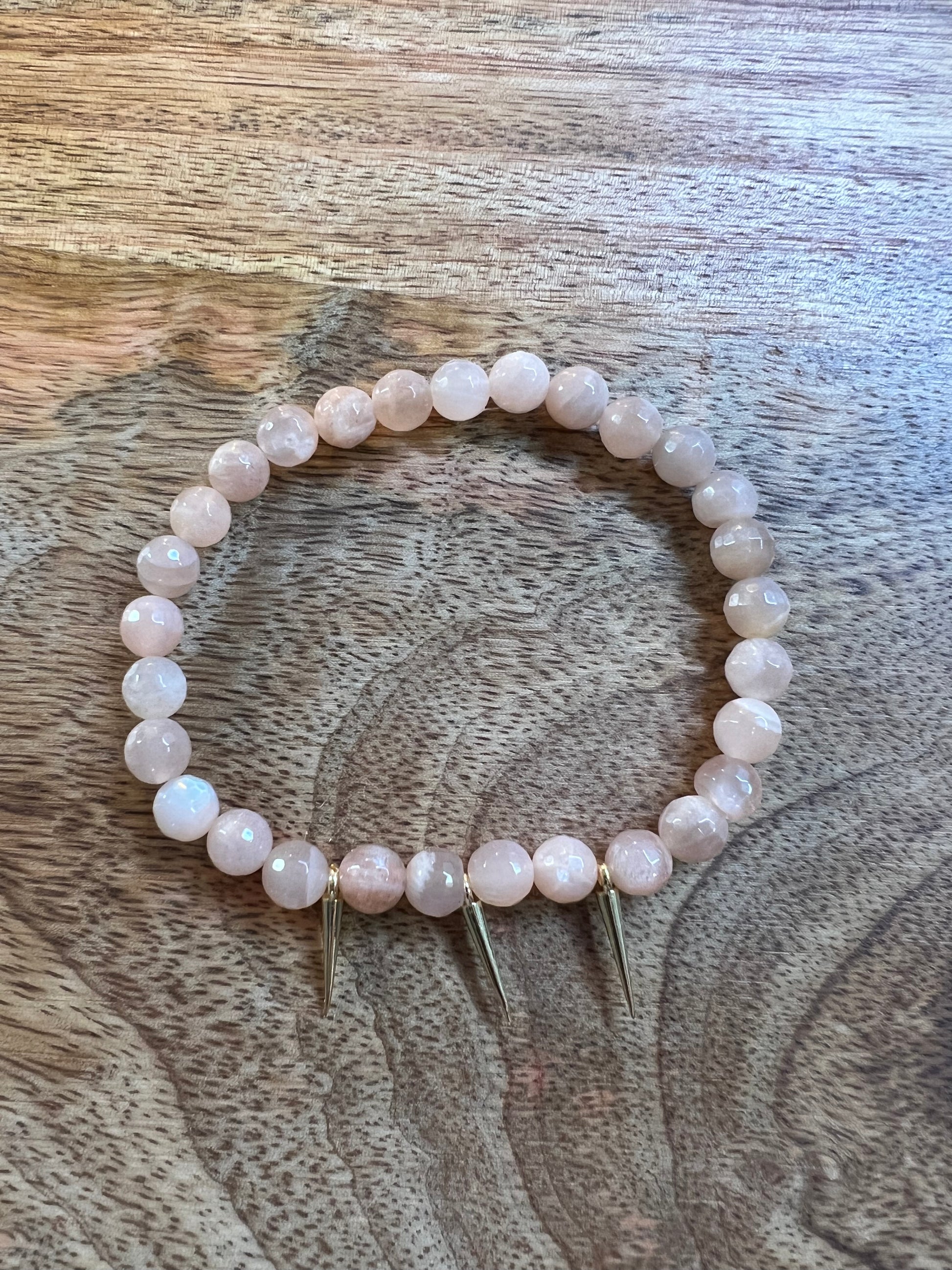 Estas piedras de 6 mm están facetadas y tienen el tono perfecto de melocotón combinado con 3 puntas doradas.