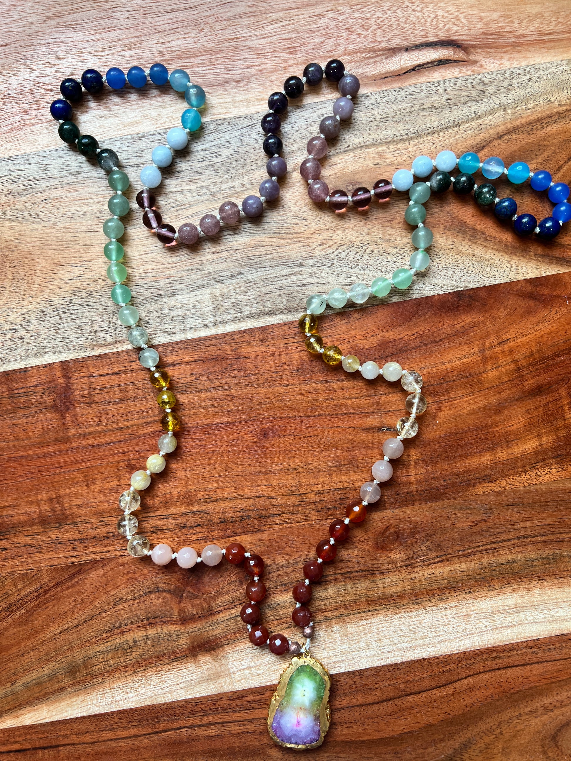 Todas estas son piedras de alta calidad sobre hilo de seda y anudadas a mano con intención.