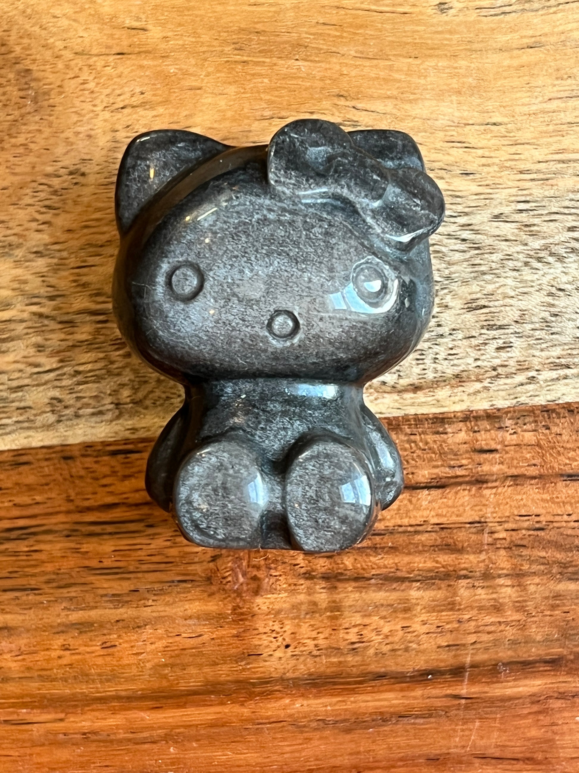This is a solid self standing hello kitty that weighs in at almost a full 2.5 ounces with a beautiful sheen throughout the black obsidian stone.