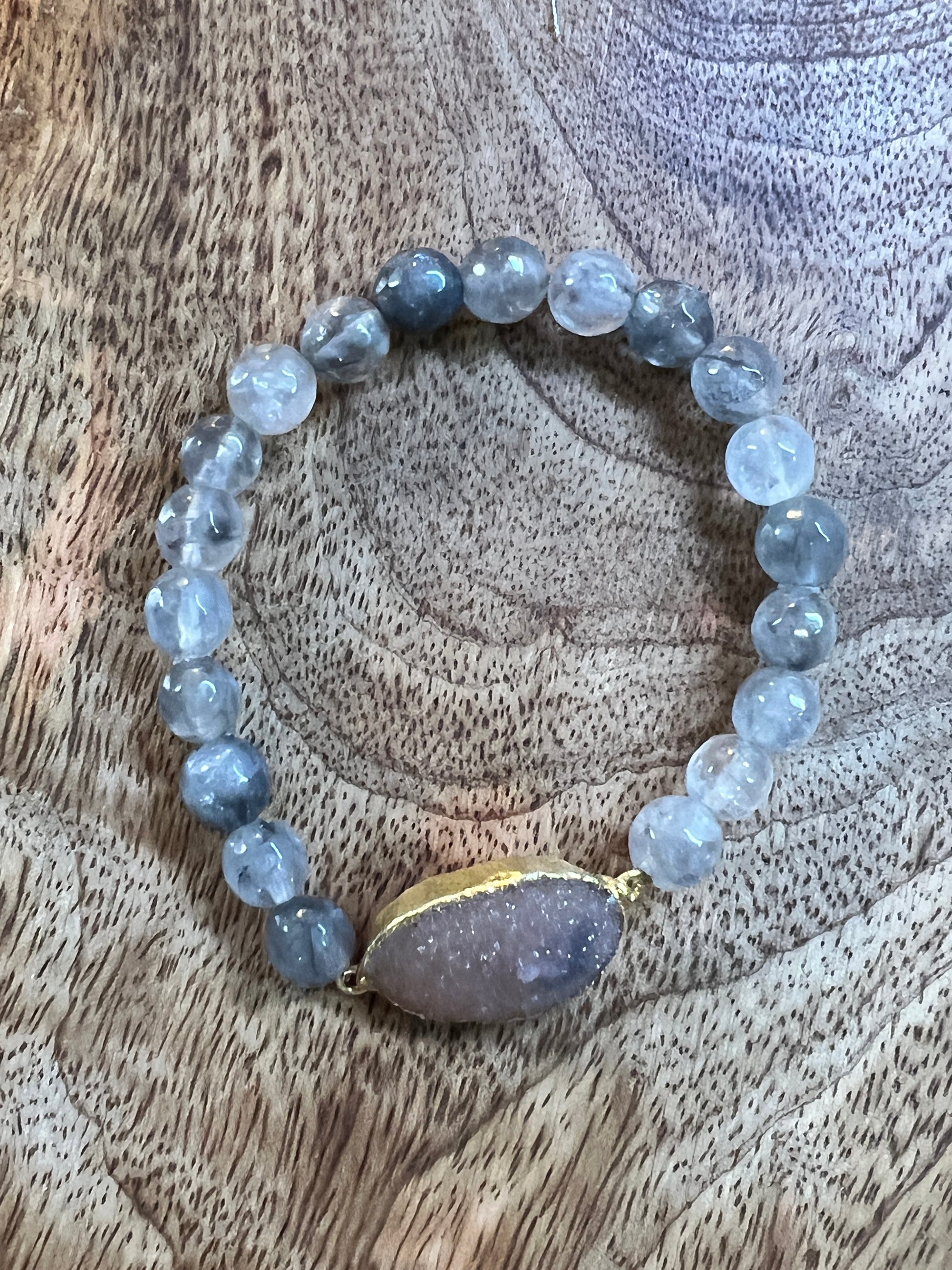 These faceted stones are 8mm and feature a sparkly druzy center piece that looks more like glitter than something from the Earth.